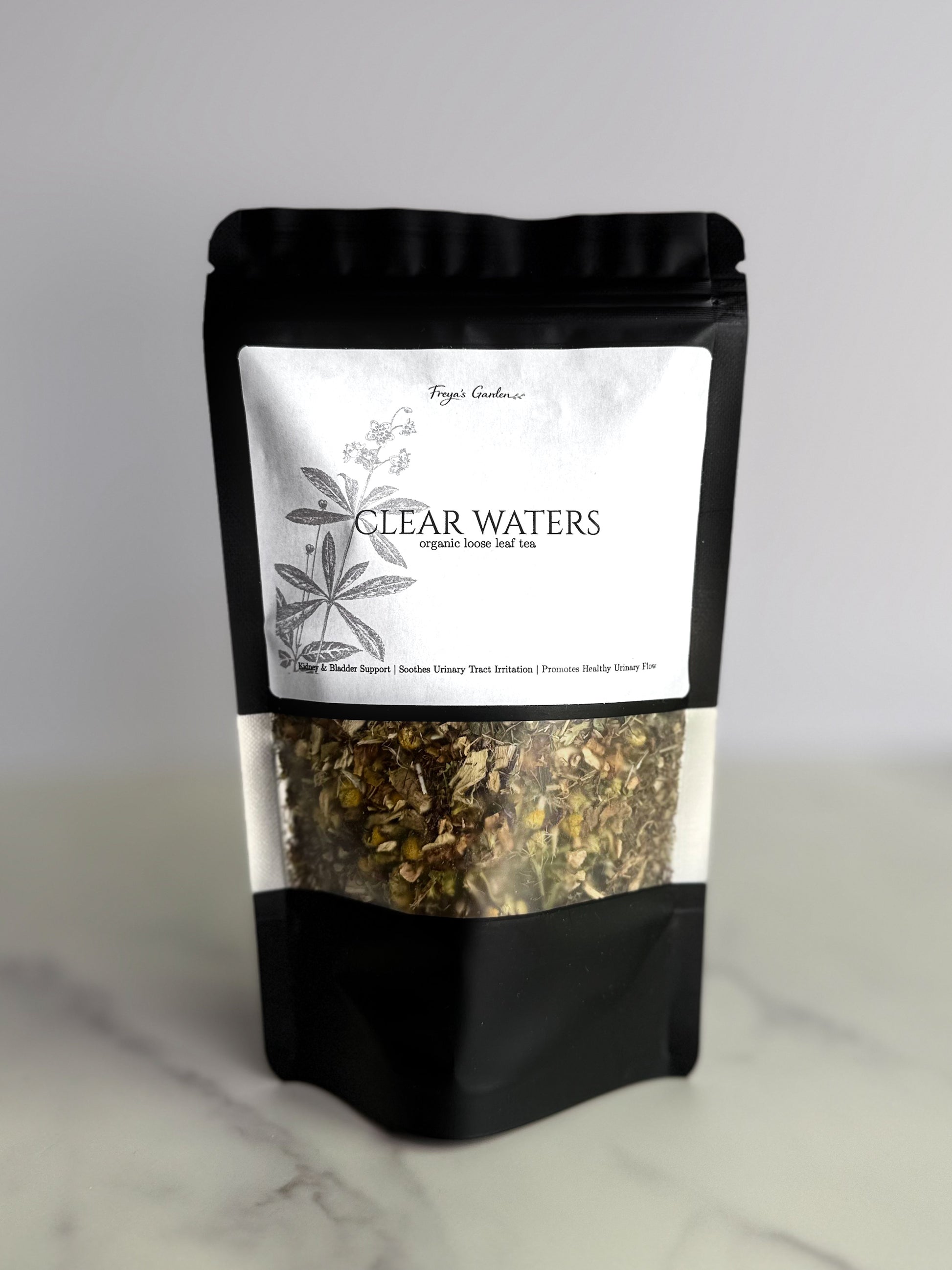 Clear Waters is a wonderful tea to enjoy during times when extra urinary support is needed or as a gentle short-term cleanse for the kidneys and urinary system.